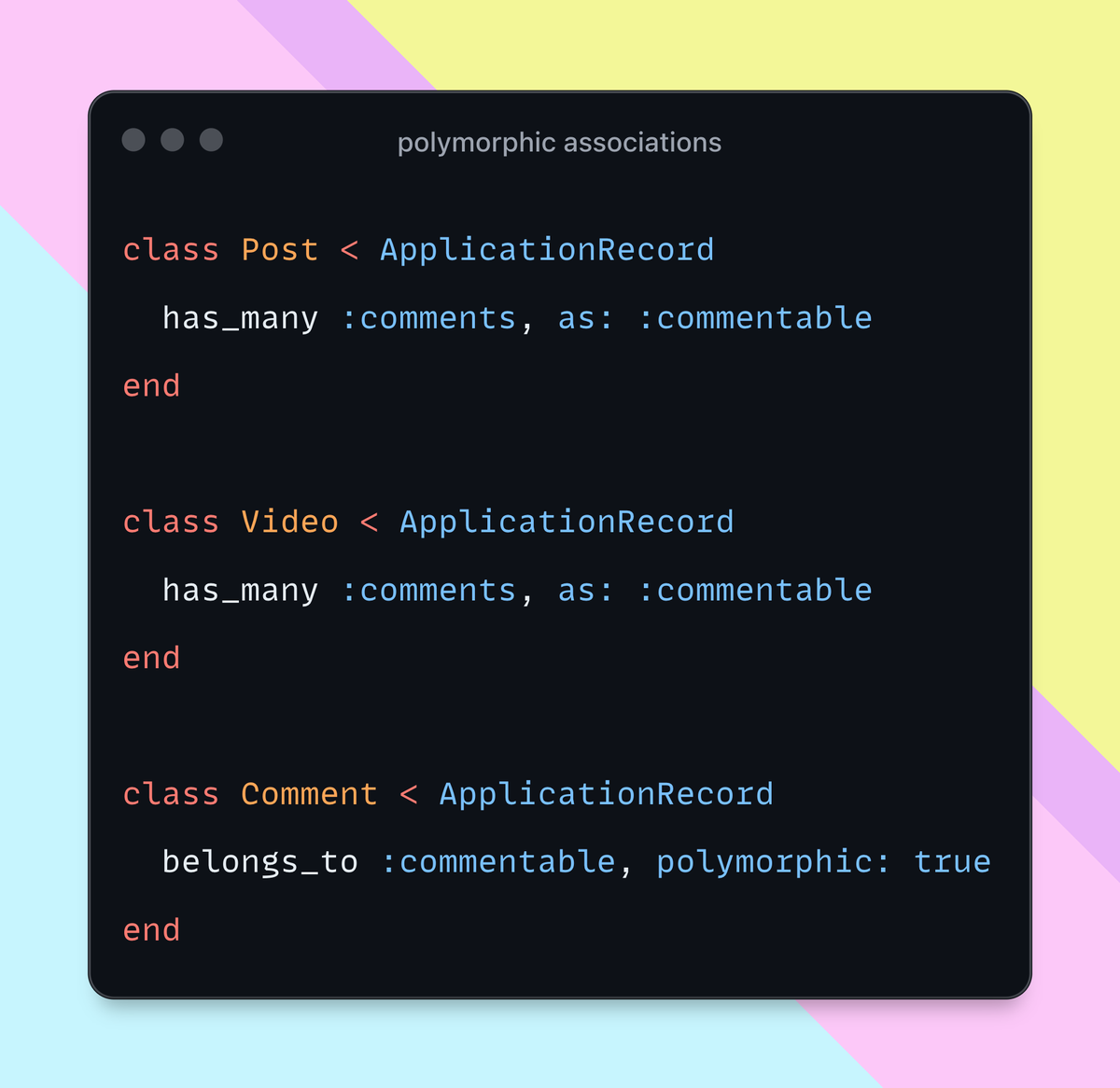 rows will still reference the old class name string. You’ll need a migration to update those rows.Consider the following models in a Rails app.